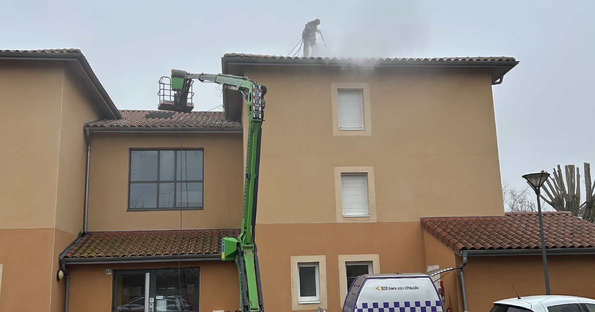 L’équipe de JTH vous accompagne pour vos travaux de démoussage et traitement de toitures, traitement de façades, réparation de fuites, nettoyage haute pression de surfaces.